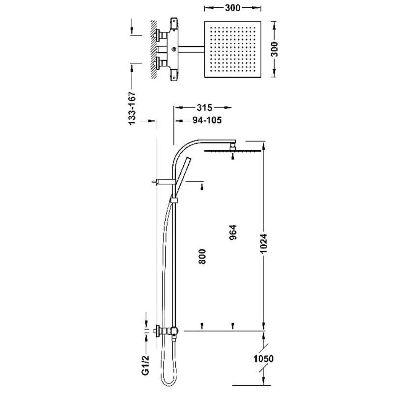 Dane techniczne: - wymairy deszczownicy: 300x300 mm - przyłącza: G1/2