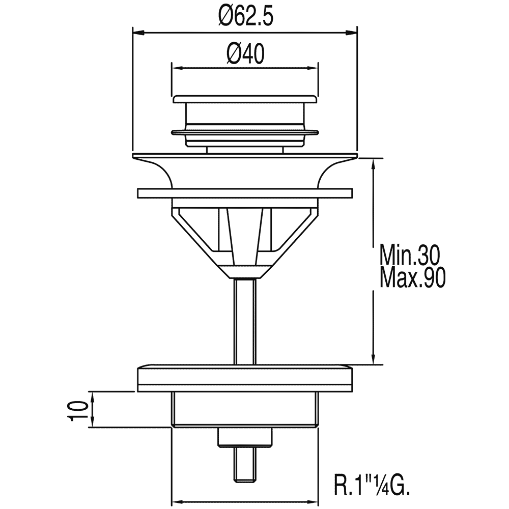 TRES SIMPLE-RAPID wpust łazienkowy pionowy 40 mm