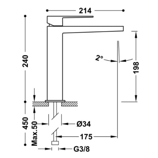 - zasięg wylewki: 175 mm