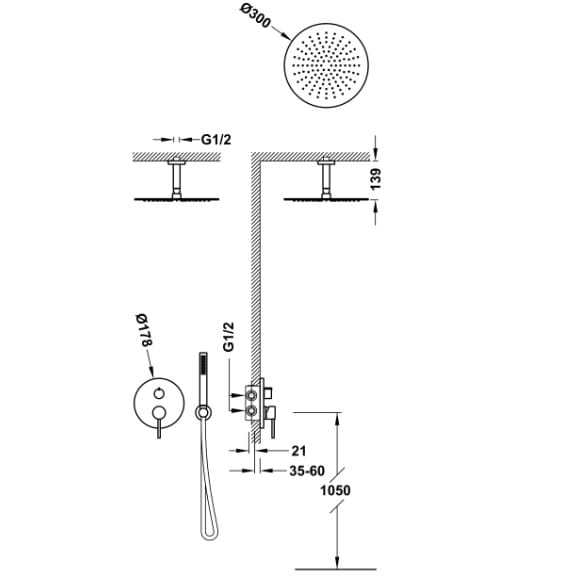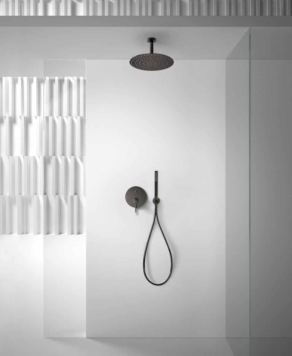 TRES STUDY EXCLUSIVE zestaw natryskowy z baterią i deszczownicą, czarny metalizowany