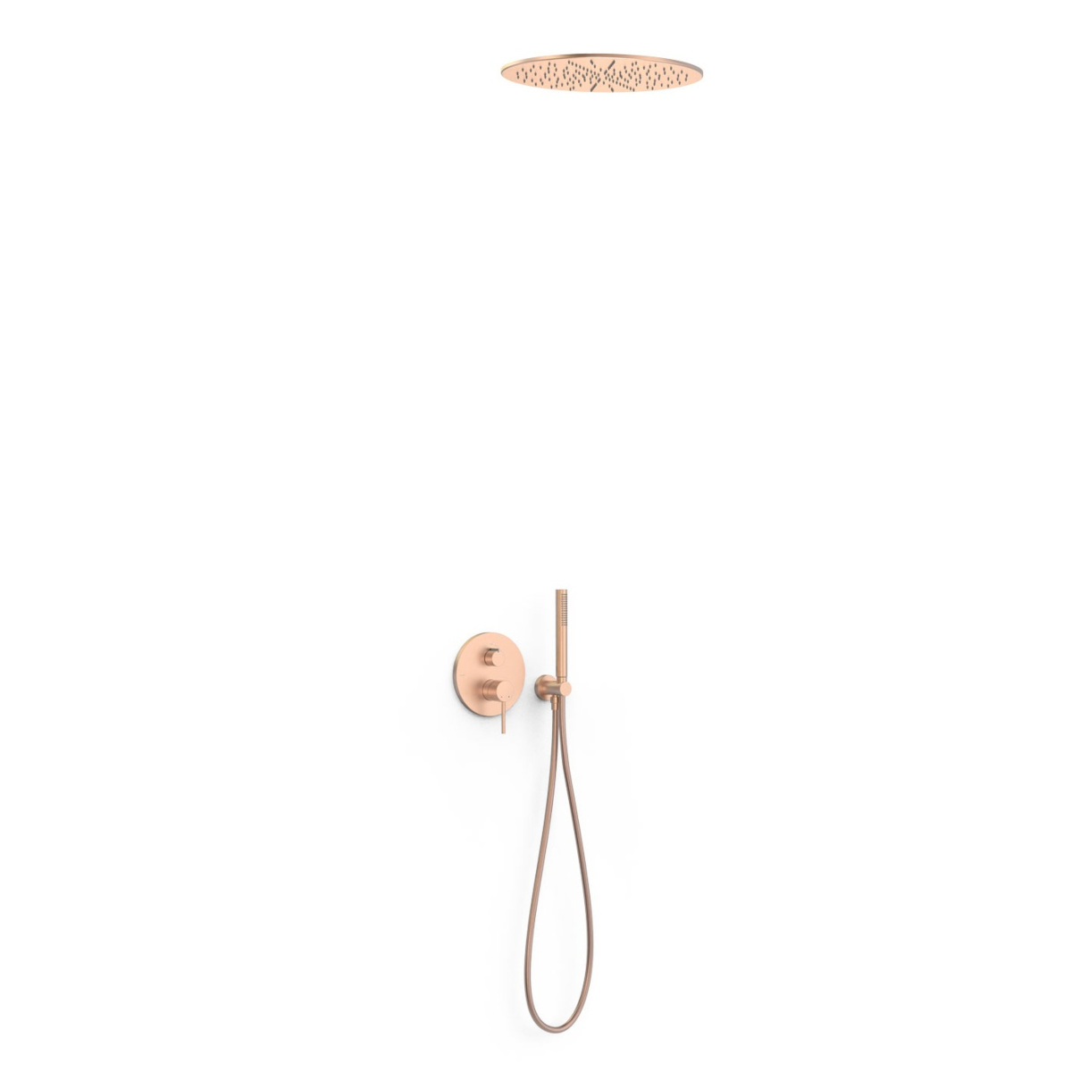 Główne cechy: - kolor: 24-K różowe matowe złoto - montaż: podtynkowy - typ: jednouchwytowy - rodzaj: natryskowy - przełącznik funkcji 2-drogowy - deszczownia podtynkowa sufitowa ze stali nierdzewnej: Ø 405 mm - uchwyt do słuchawki prysznicowej z przyłączem w ścianie - słuchawka prysznicowa z mosiądzu systemem zapobiegającym osadzaniu się kamienia - satynowy wąż - natrysk ręczny z mosiądzu - sitko ze stali nierdzewnej