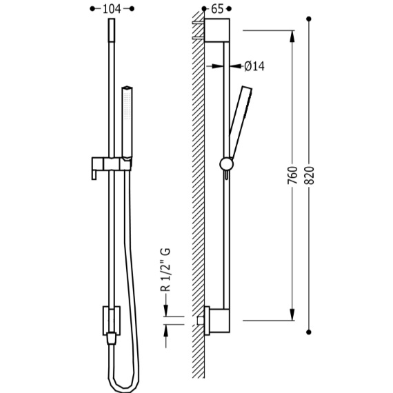 Dane techniczne: - długość: 820 mm - rozstaw mocowań: 760 mm - średnica: 14 mm - średnica przyłącza: 1/2"