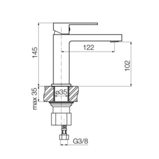 Dane techniczne: - wysokość baterii: 145 mm - zasięg wylewki: 122 mm - zalecane ciśnienie robocze: 0,1-0,5 MPa - temperatura maksymalna: 90°C