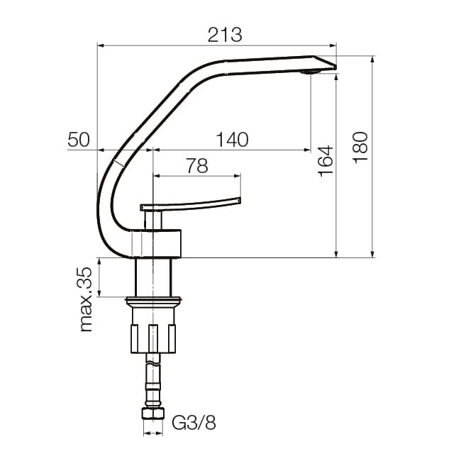 Dane techniczne: - wysokość baterii: 180 mm - zasięg wylewki: 140 mm - przyłącze: G 3/8