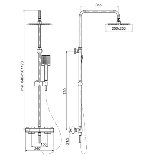 VALVEX CUBUS zestaw natryskowy z baterią termostatyczną i deszczownicą, czarny